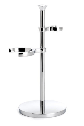 Elegante houder van verchroomd metaal voor je favoriete Muhle PURIST scheerkwast en scheermes. Een scheerkwast gaat langer mee als je deze omgekeerd ophangt in een scheerkwasthouder.